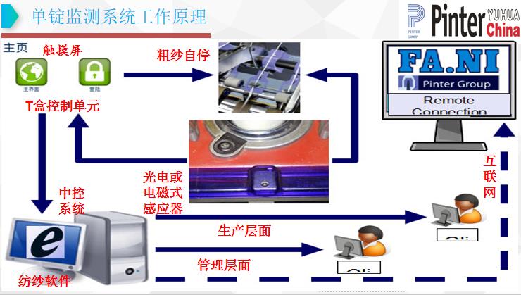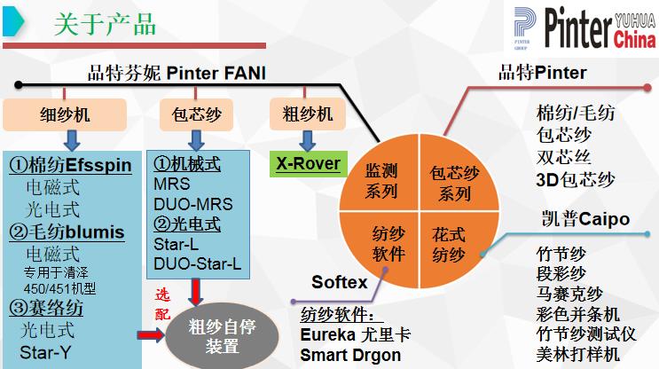Pinter.FANI單錠監測系統,有光電式和電磁式兩種,包括:BLUMIS毛紡單錠監測(專用于青澤450/451毛紡細紗機),Effispin棉紡單錠監測(電磁式和光電式2大類7個系列),Star-yarn賽絡紡單錠監測,Star-L/Duo Star-L包芯紗芯絲監測,MRS/Duo MRS包芯紗芯絲監測,和 R-Stop 粗紗自停裝置。